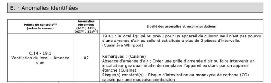 Exemple : extrait “anomalies” d’un diagnostic gaz à Lyon.